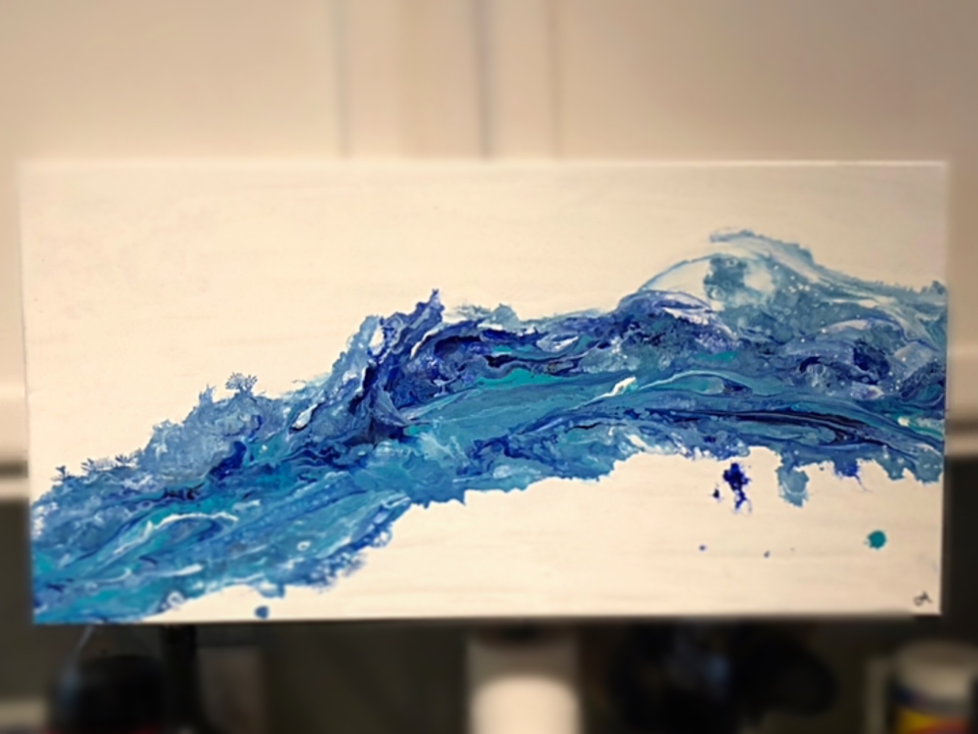 there’s paint supplies so scattered that I end up playing the “every time you lose something” drinking game. In between paintings, I keep trying to clean paint marks off the floor but every time I take a step there’s a new mark because I don’t realize I have stepped in a pool of paint and now I’m just leaving blue foot prints every where so I go to wash my feet and realize that some how I got paint on my teeth. I come back to move a wet painting and end up dropping it face down, on the floor I just cleaned foot prints from, and have to wait for that painting to dry before I can start all over again, and then my wine spills. Magical, right?